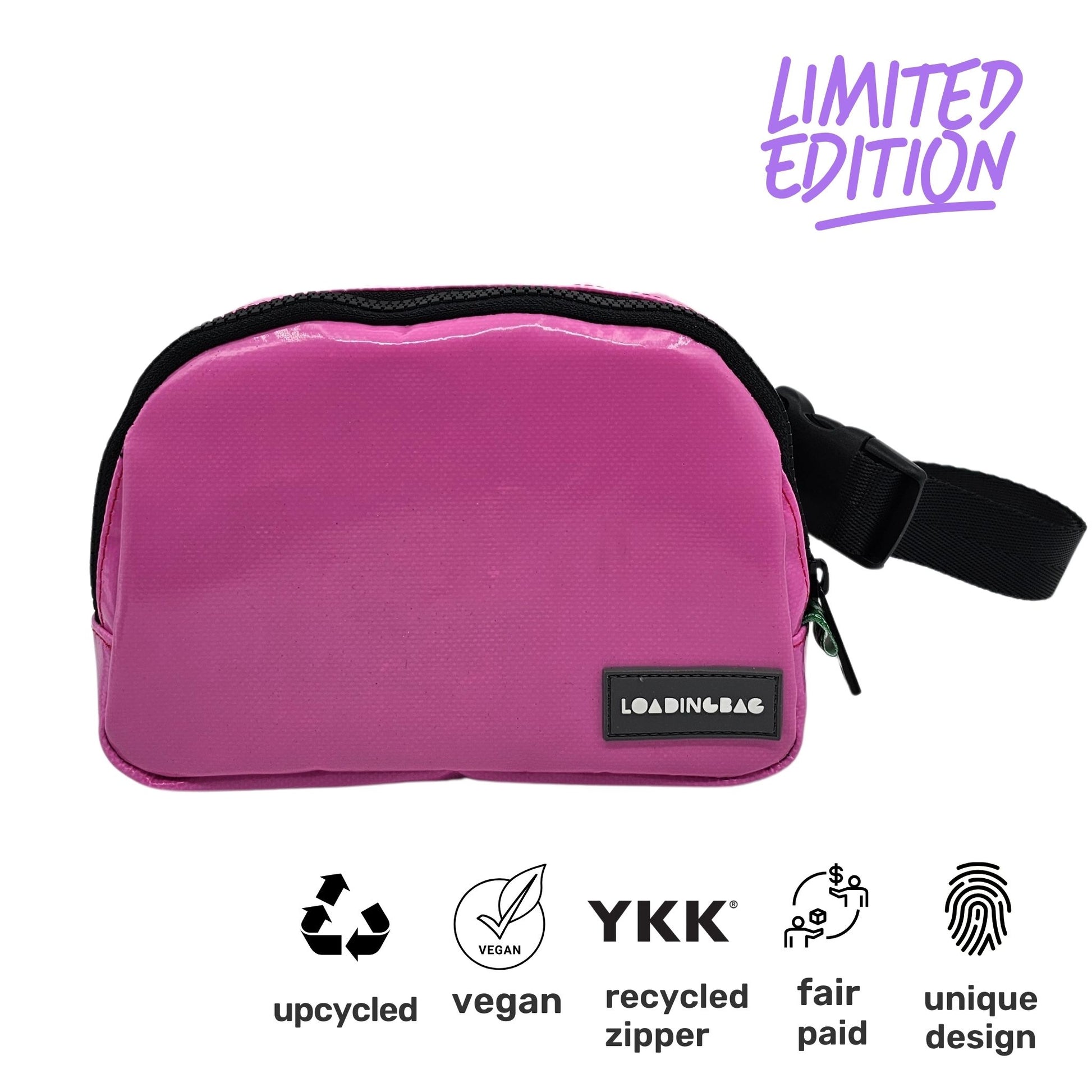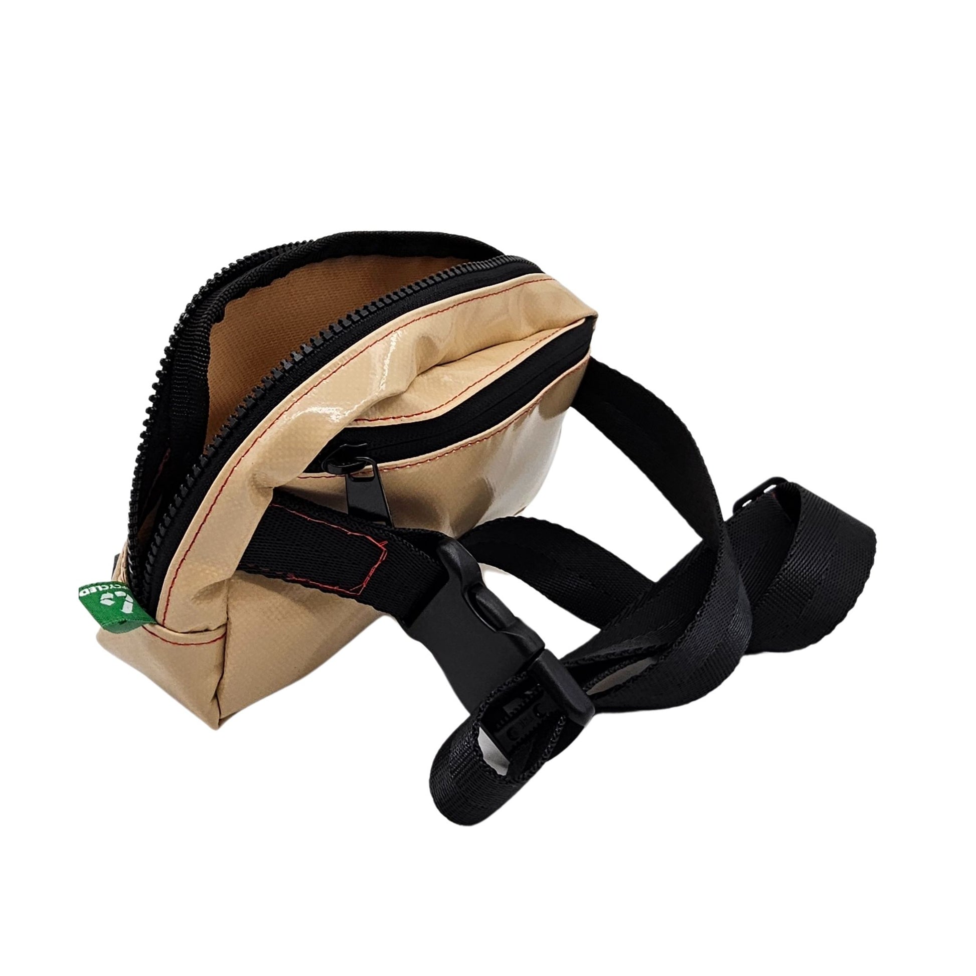 Whether you wear it as a fanny pack, a mini belt bag, or a vegan crossbody bag, the Upcycled Belt Bag is an ideal companion for those who appreciate fashion that feels good and does good. Ready to make a statement with every step?