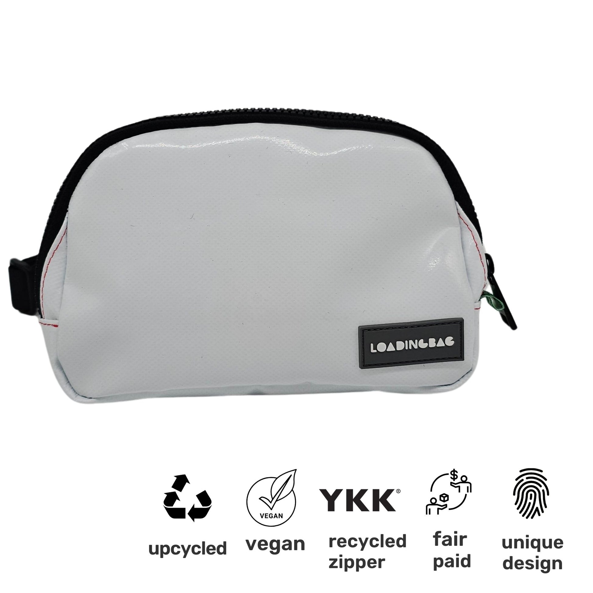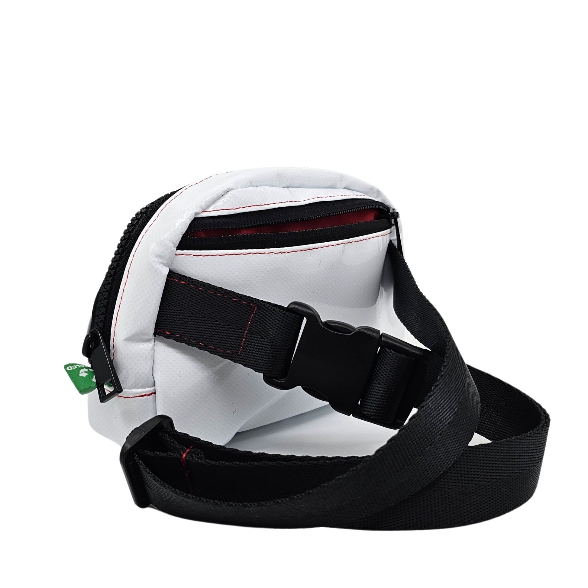 Upcycled Belt Bag β Upcycled Belt Bag, Fanny Pack, Mini Recycled Bag, Vegan Crossbody Bag, White Track Tarp πΏβ¨