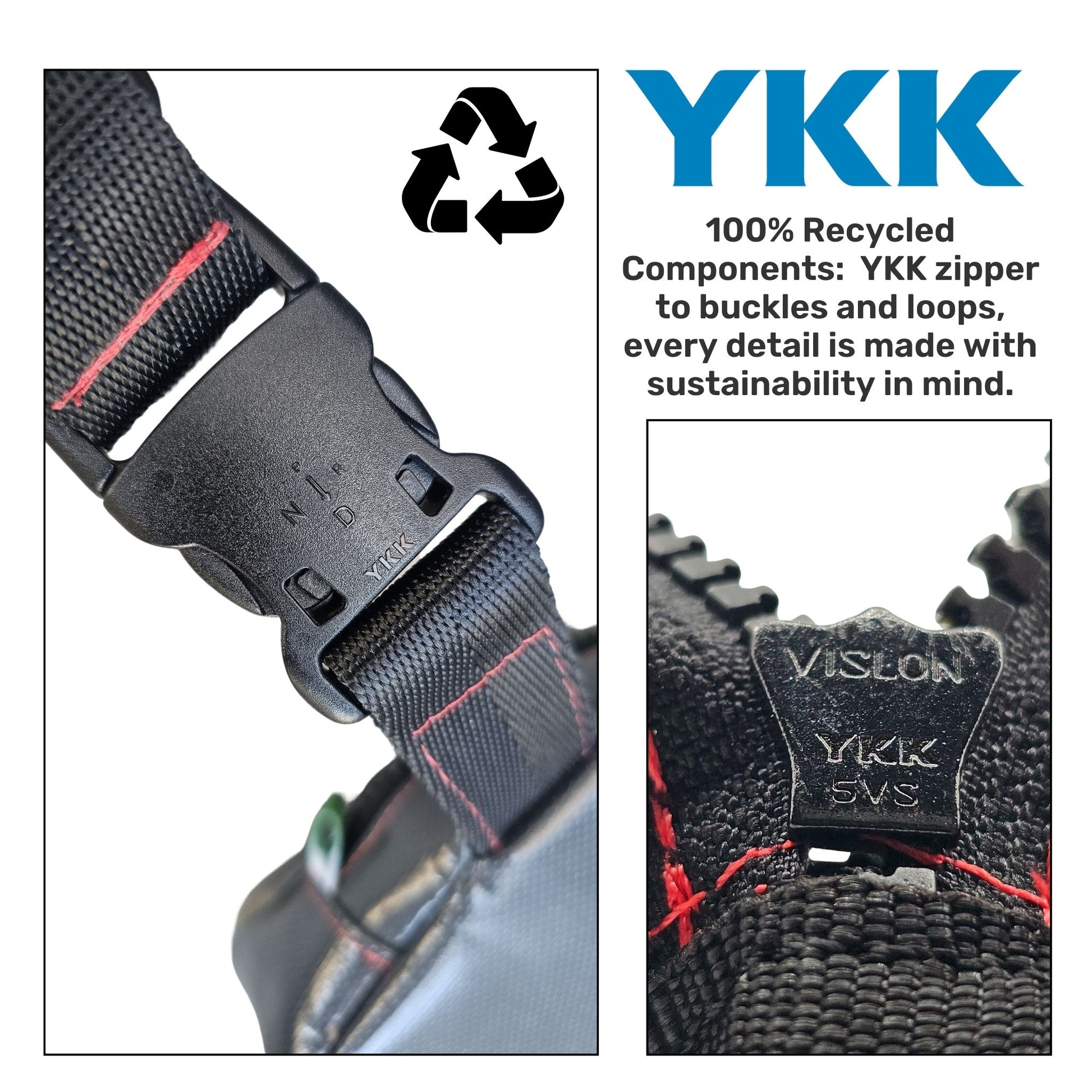 π 100% Recycled Components: Featuring recycled YKK zippers, buckles, and loops, this mini recycled bag has been made with sustainability in mind, ensuring you have a truly eco-friendly option.