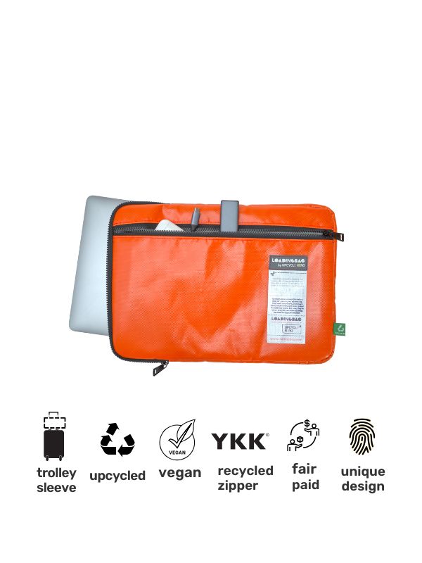 Designed for the urban and adventurous spirit, the Loadingbag laptop sleeve is made from discarded billboards and truck tarps! With its water-resistant exterior, it’s ready to accompany you on all your journeys.